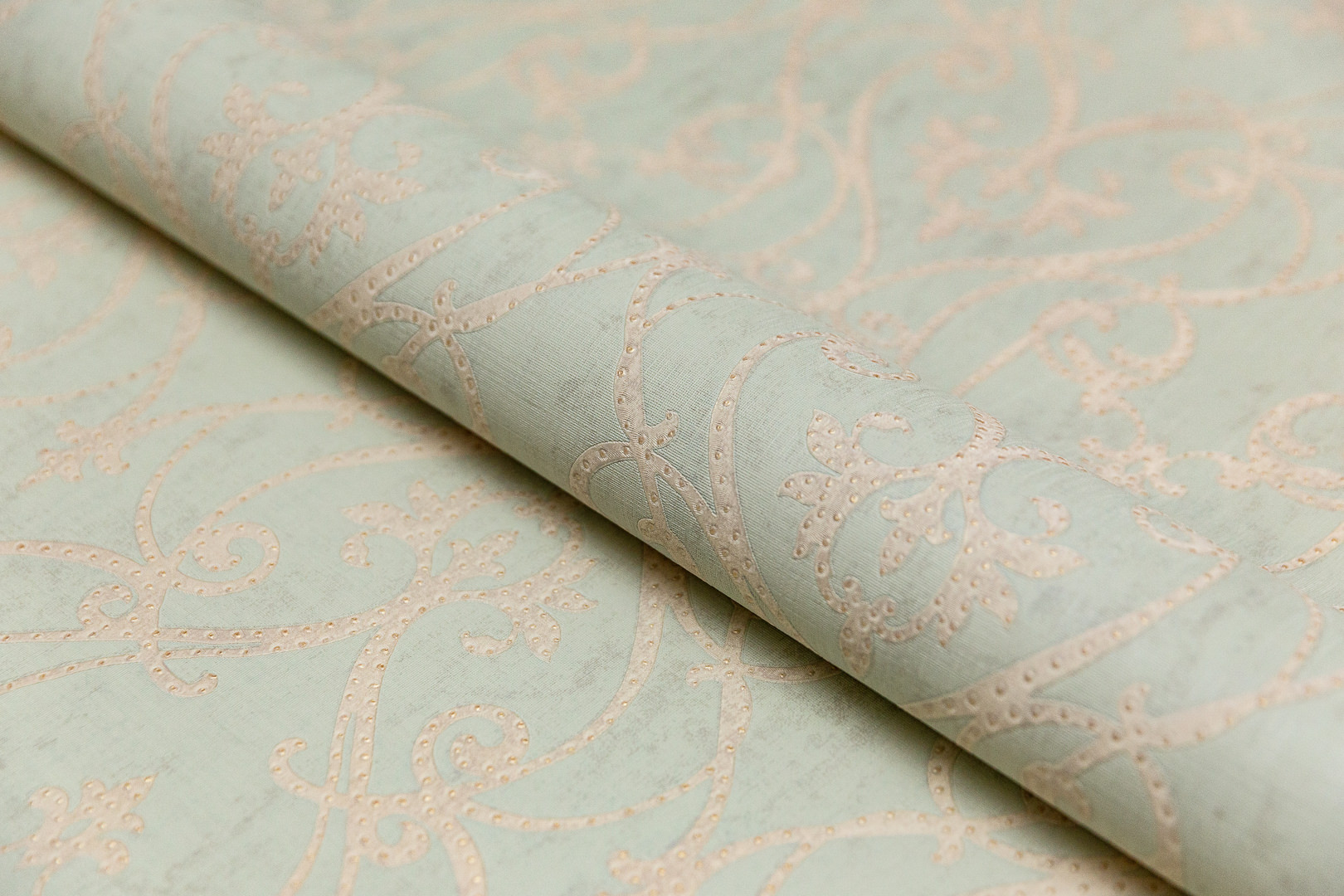 Обои виниловые на флизелиновой основе Дамаск мотив, зелёный