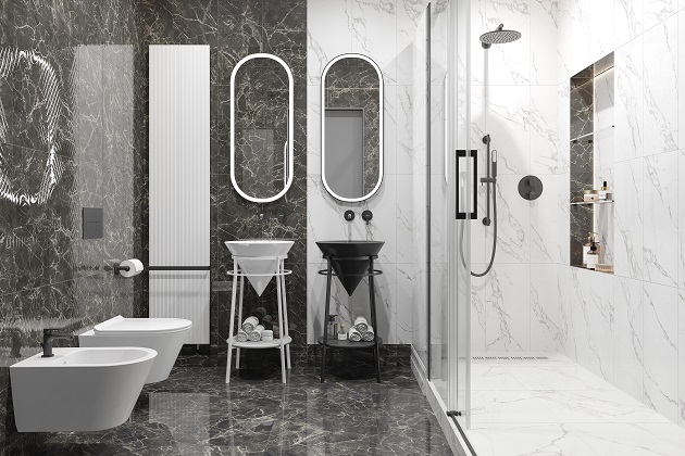 Дуэт черного и белого в дизайне ванной комнаты никогда не терял свою популярность. Монохромное оформление позволяет придать санузлу особую изысканность и величие, но добиться баланса этих двух цветов – непростая задача. Благодаря керамике, сантехнике и мебели KERAMA MARAZZI мы смогли решить её для вас.
