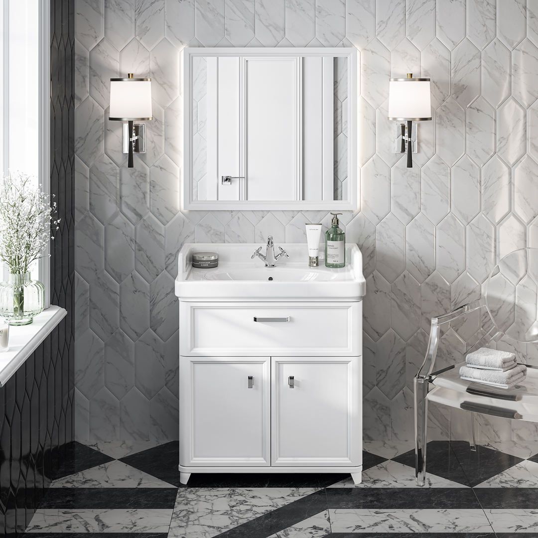 Без зеркала трудно представить себе ванную комнату. Особенно если речь идёт об одном из зеркал «Мио», выполненных с деликатной подсветкой по периметру. Светодиодная подсветка включается одним прикосновением к сенсору в нижней части зеркального полотна. Квадратные, прямоугольные и круглые зеркала шириной от 60 до 120 см — отличный выбор для взыскательного покупателя.
