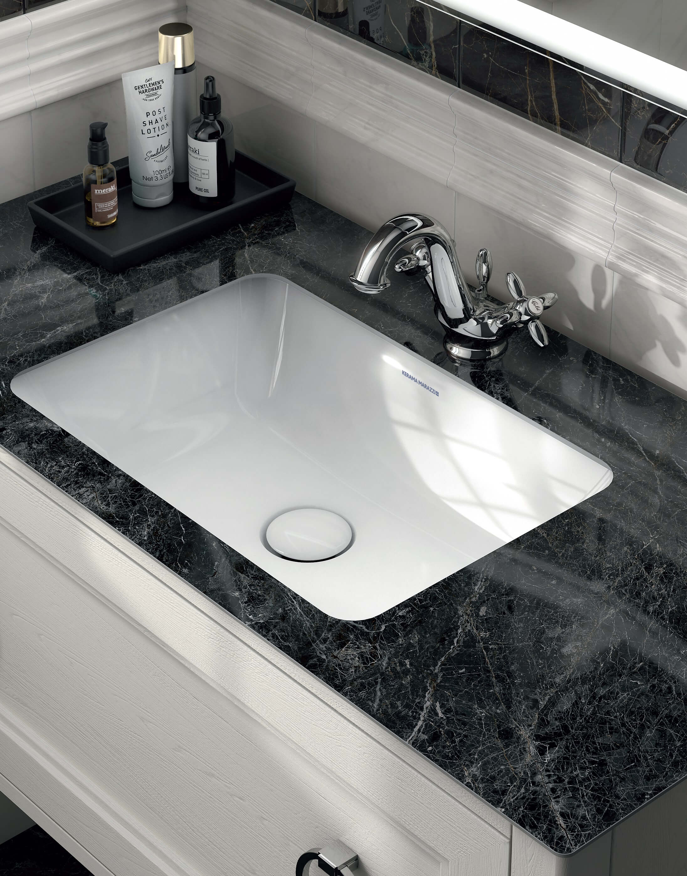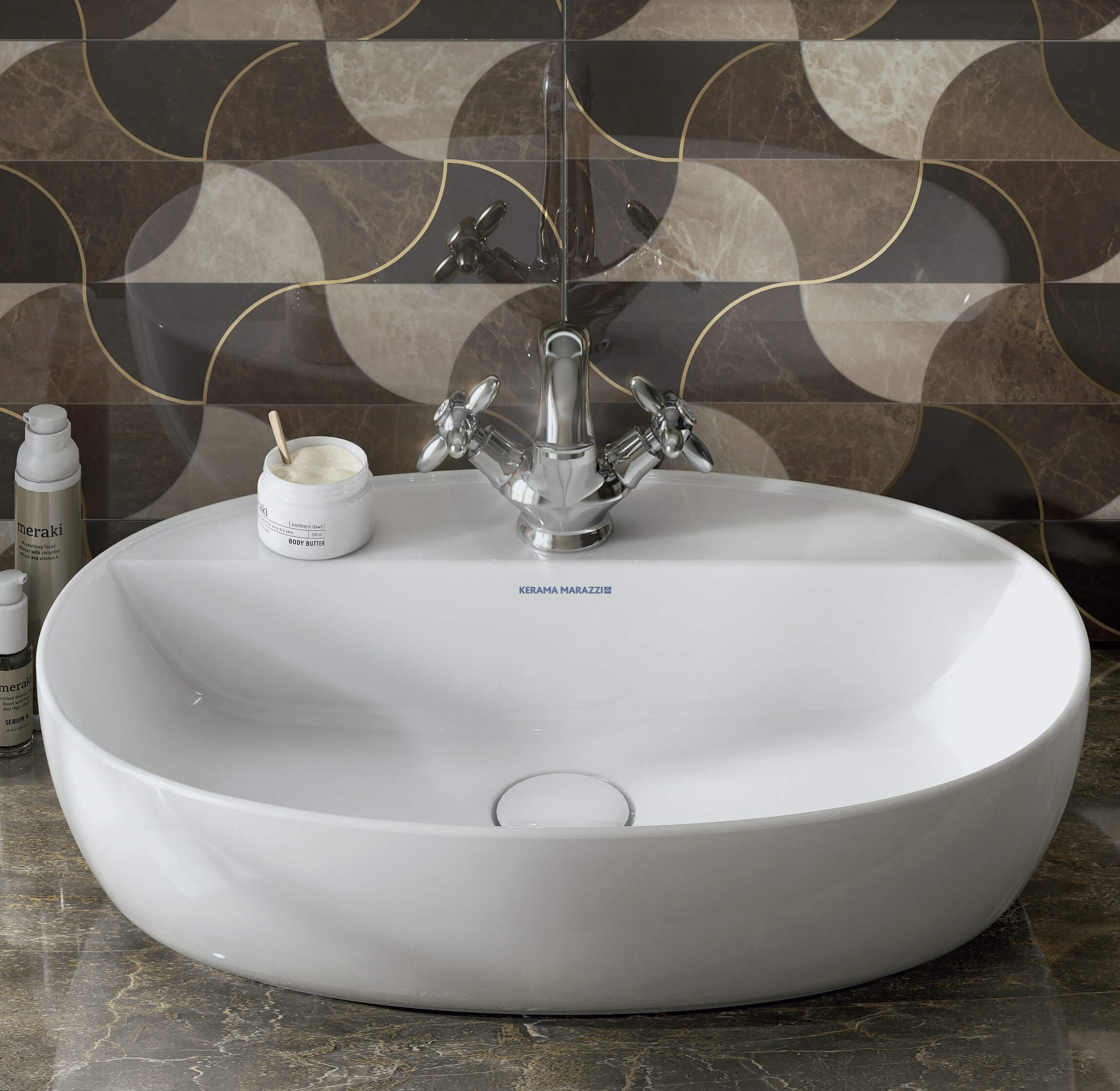 Серия «Муза», благодаря своему ретро стилю, позволяет воссоздать в интерьере атмосферу барочных времен, но в современном прочтении. Вневременная элегантность придаёт ей оттенок богатства и шика. Душевые лейки с плавными округлыми линиями внешне походят на телефонные трубки начала 20 века. А на керамических вставках на вентилях витиеватым шрифтом указана температура воды. Муза — eдинственная серия в ассортименте KERAMA MARAZZI, где представлены смесители с двумя вентилями. Для тех, кому потёртая бронза покажется слишком смелой, предлагаются аналогичные хромированные модели.